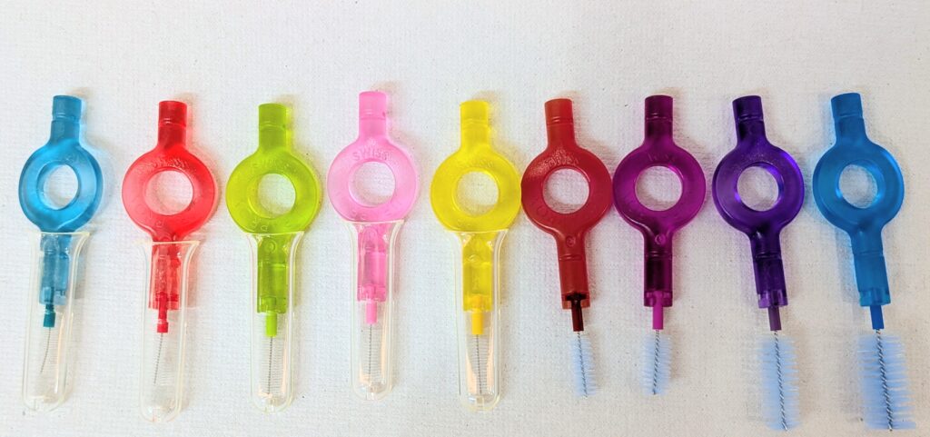 クラプロックスの歯間ブラシは、色ごとにサイズが分かれていて、歯と歯のすき間にぴったり合うサイズを選べます。
