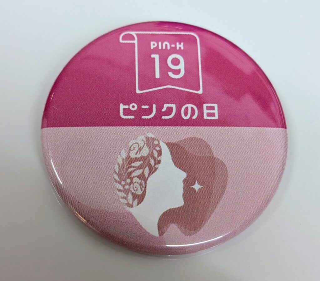 当院ではスタッフ全員が毎月19日にこのピンクのバッジを胸につけ、啓蒙活動に参加しています。