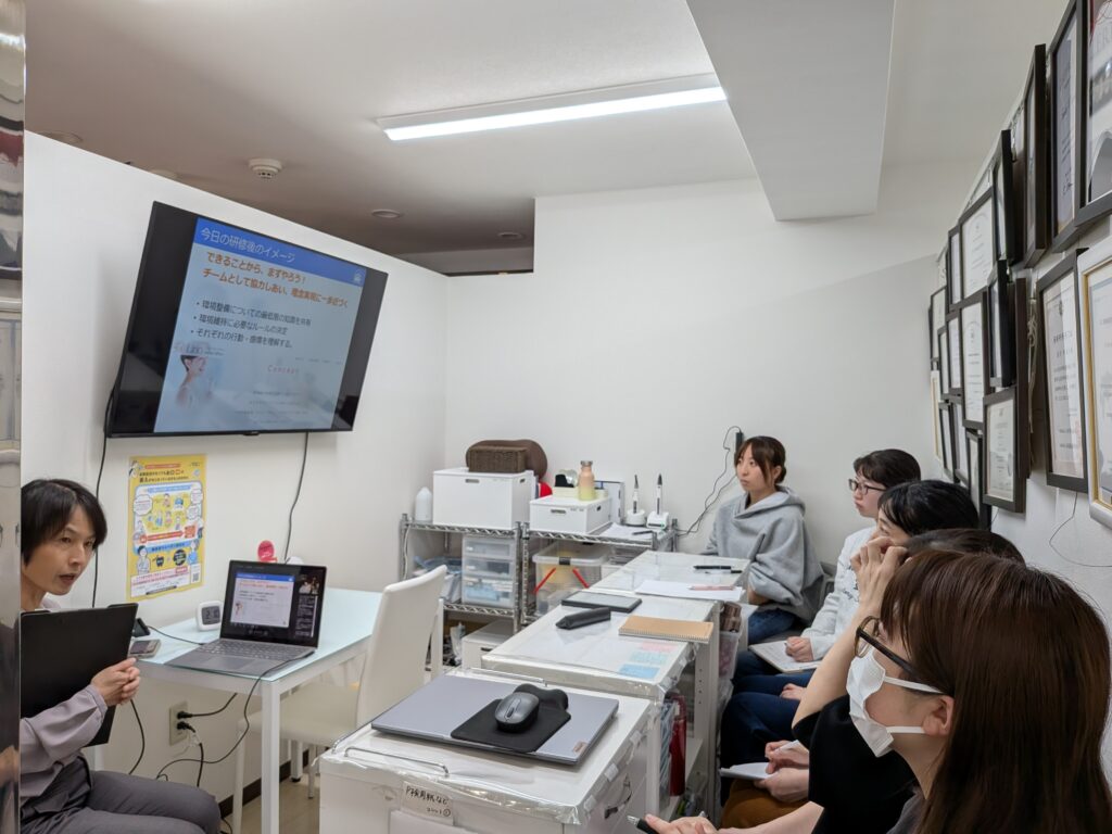 約2か月前の第1回で整えたルールをもとに、今回は現場での変化を振り返り、さらに改善を重ねました。スタッフ一人ひとりが、より無駄なく、より美しく動くための意見を出し合い、静かで密度の高い時間となりました。